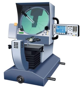 Dentro de las mediciones por coordenadas un de los equipos más simples capaces de medir dos dimensiones, se encuentran los proyectores de perfiles. Son equipos que se fabrican desde hace muchos años y que han sufrido un gran cambio gracias a los calculadores geométricos. Gracias a los calculadores geométricos se pueden recoger puntos con coordenadas X e Y y con estos medir figuras geométricas tales como puntos, rectas y círculos. Con estas figuras geométricas podemos relacionarlas o construir tal y como hacen los avanzados software de las máquinas de medición por contacto y así calcular distancias, ángulos, planitudes perpendicualridades,…
