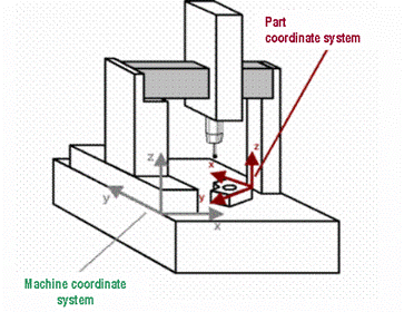 Existen dos tipos de sistemas de coordenadas a tener en cuenta. El primero se llama el Sistema de Coordenadas de la Máquina. Aquí, los ejes X, Y y Z se refieren a los movimientos de la máquina. Cuando se ve desde el frente de la máquina, el eje X corre de izquierda a derecha, el eje Y corre de adelante hacia atrás y el eje Z corre de arriba a abajo, verticalmente perpendicular a los otros dos.
